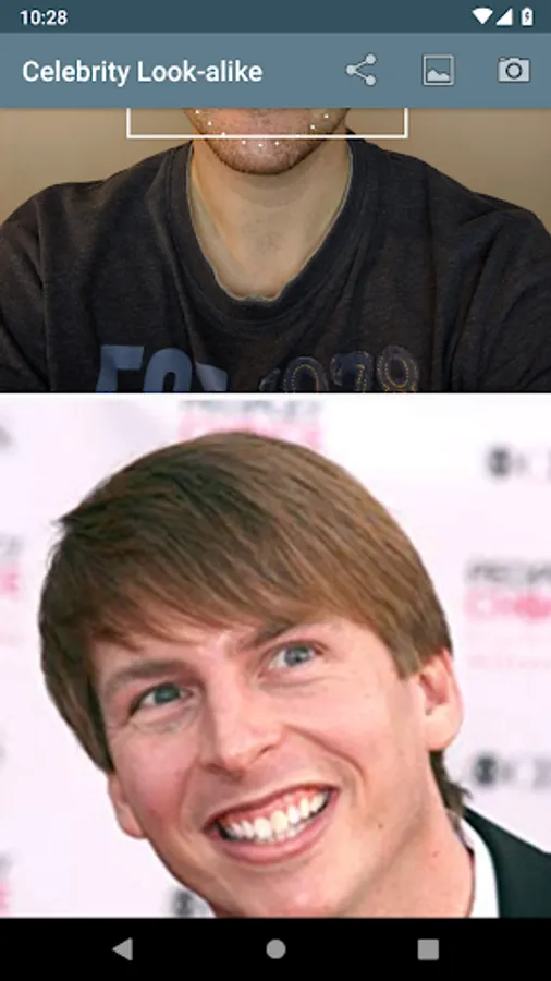 You can choose to share your celebrity comparison by clicking the share button and selecting which celebrity match you'd like to share but that's completely up to you.