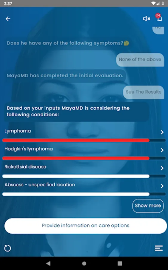 MayaMD is a powerful symptom checker and virtual health assistant powered with AI to provide you with an unmatched level of healthcare data and insight. MayaMD can process any number and combinations of symptoms, physical signs, labs, medications, and past medical history and generate a clinician-level patient note and decision-support for you and your clinician. Unlike other slower symptom checkers, MayaMD uses AI and critical-thinking strategies of top physicians to provide meaningful insight in less than 90 seconds. It is one of the fastest and most effective health assistants available.
