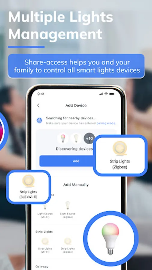 - Easily control all smart devices including LED, bulb, strip light, lighting from anywhere