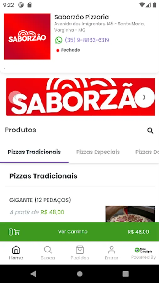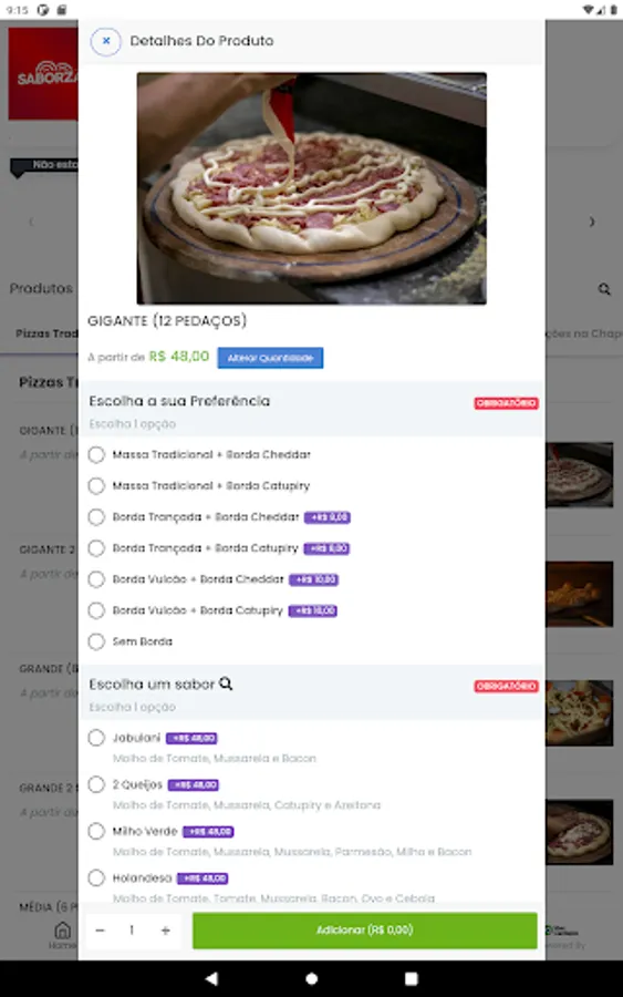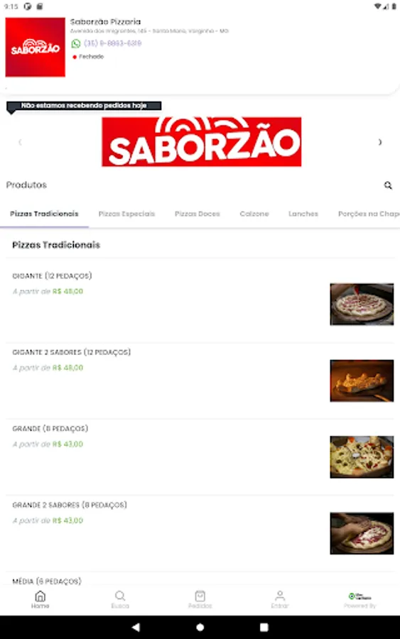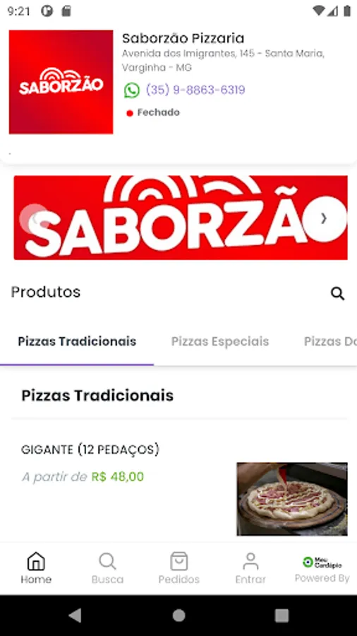 Now it's easier to order at Saborzão Pizzaria. Our app allows you to easily order from your cell phone and receive it directly at your home. Also, stay on top of exclusive promotions and discount coupons.