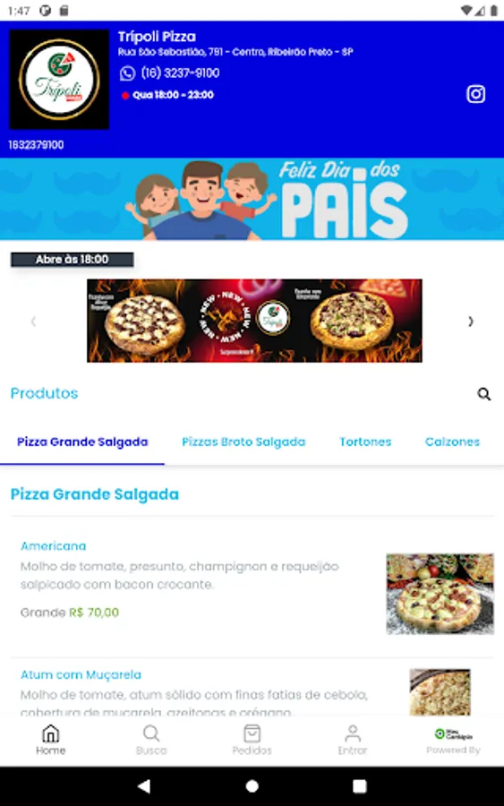 Now it's even easier and more practical to order at Tripoli Pizza! With our app, you can order directly from your cell phone and receive delicious pizzas in the comfort of your home. In addition to offering an agile and intuitive ordering process, the Tripoli Pizza app also keeps you up to date on unmissable promotions and exclusive discount coupons.
