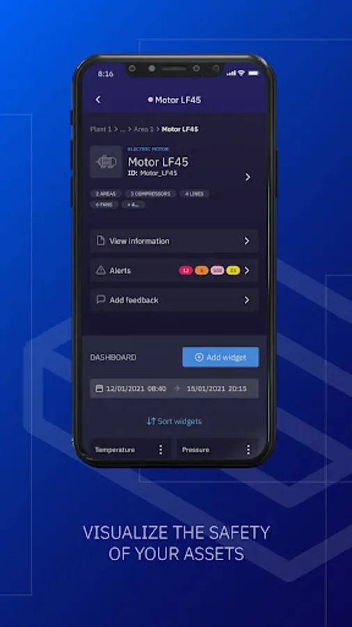 Wherever you are, you can monitor alerts and notifications and visualize corrective actions taken.