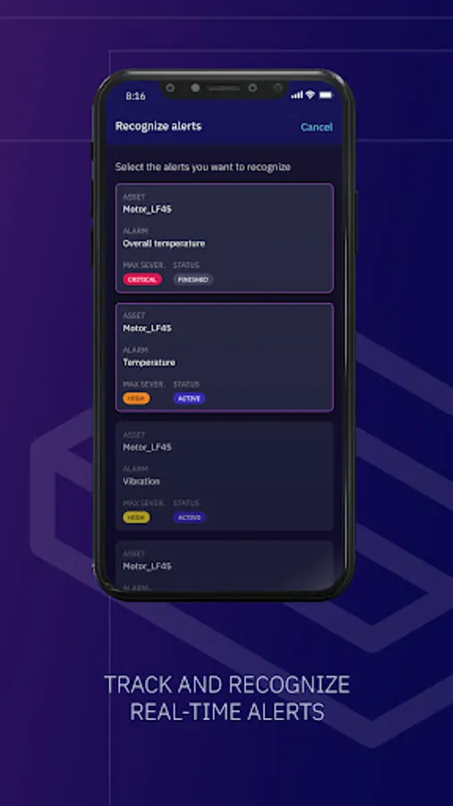 A platform capable of collecting data from all sources linked to any asset, and transforming it into simple, useful and user-friendly information. This directly triggers an automated and smart process of alerts. That allows the user a continuous real time control and eases the decision making.