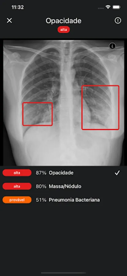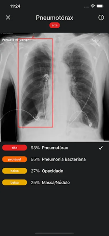 This software was developed in Artificial Intelligence for chest radiographs in orthostatic position and over 5 years of age. Any other examination submitted to the tool can create results with errors.