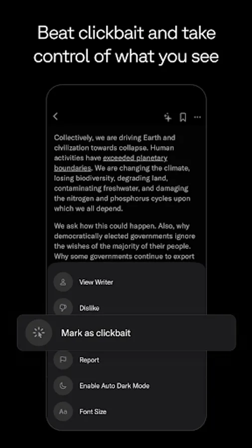 ➡️ Combat Clickbait: Mark articles as clickbait and help the community steer clear of misleading content.