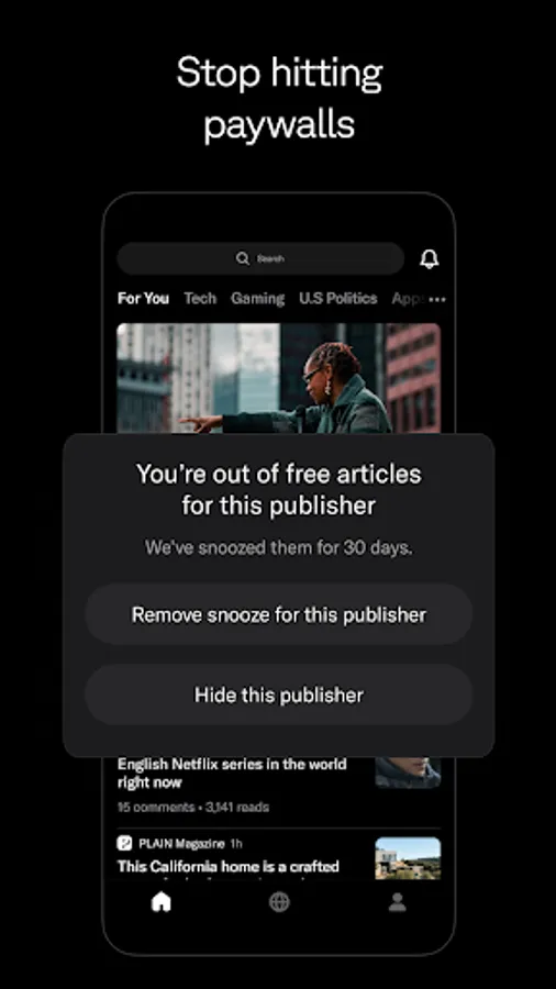 ➡️ Paywall Prevention: Automatically snooze publishers when you run out of free content.