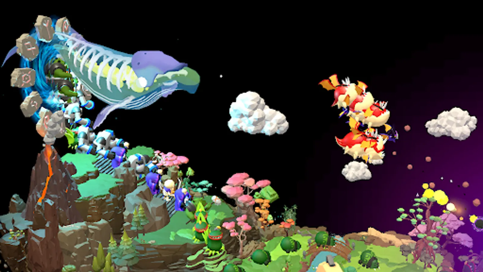 Monsters are teleporting from a blackhole, attacking from everywhere, flying in the sky, landing on the ground to invade the land. Warriors need to fly till the end when the big boss "Whale Smith" comes out and defeat it together!