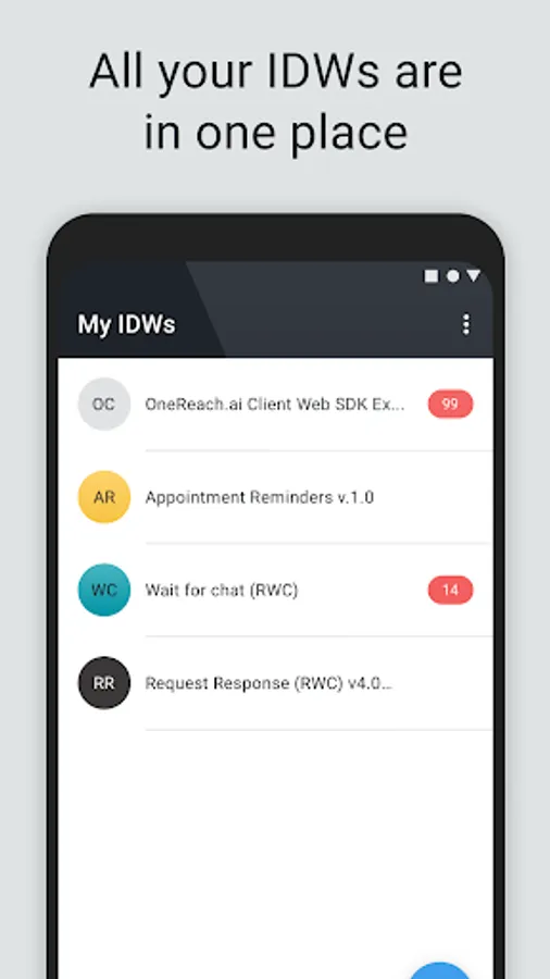 Intelligent Digital Workers by OneReach.ai allows you to access and manage all of Intelligent Digital Workers, your conversational AI applications, and bots.
