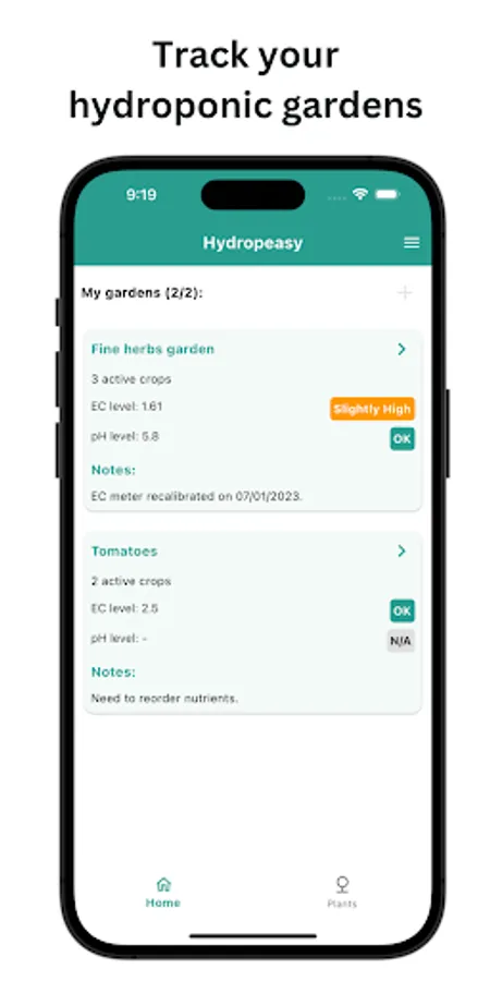 Hydropeasy helps gardeners of all levels achieve amazing results with their hydroponic gardens. Simply create your virtual garden and we will help you track and optimize your EC or pH levels, your cleaning cycles, your to-do's.