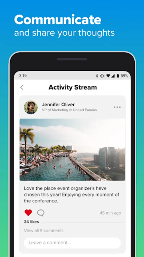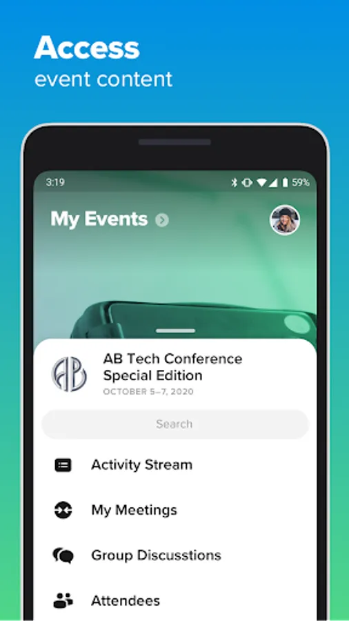 - Access essential conference information such as the speakers, sponsors, schedule, etc. and constantly stay informed.