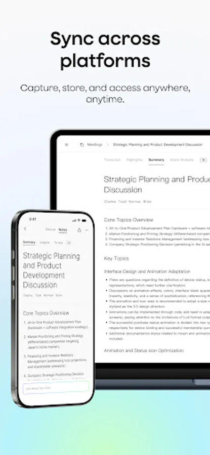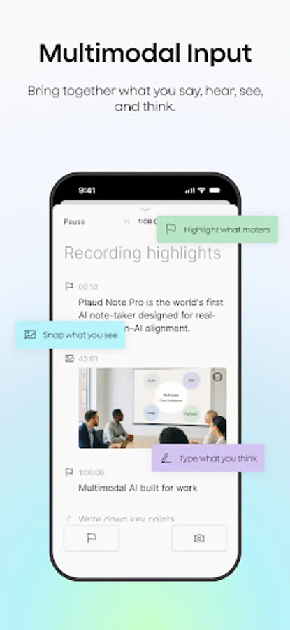 From meetings and interviews to classes and creative sessions, Plaud helps you stay fully present, while Plaud takes care of the notes.