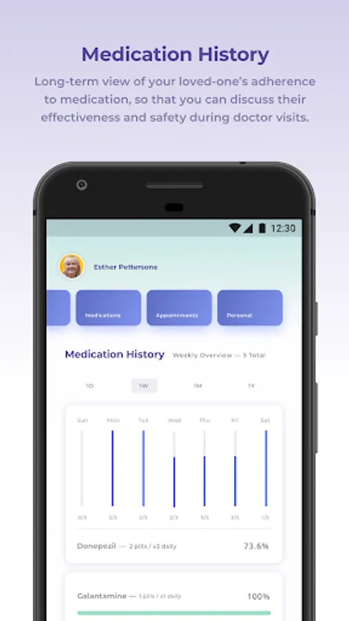 Set reminders for medications, and track how adherent your loved one is to those medications. This is vital to help your doctor understand how to best manage care strategy.