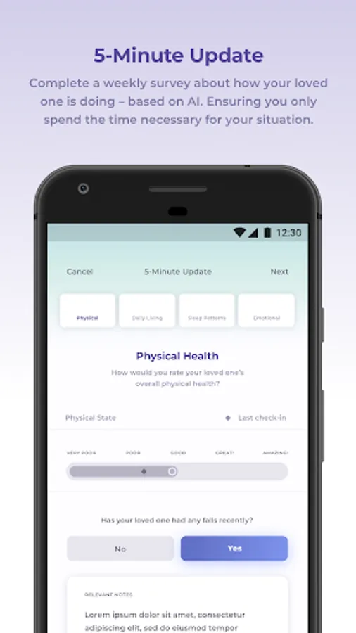 PREVENTIA’s AI (artificial intelligence) technology allows you to monitor your loved one’s health by focusing on the most relevant signs of the disease. Collect these results and review them over time to prepare for complete and efficient doctor appointments.