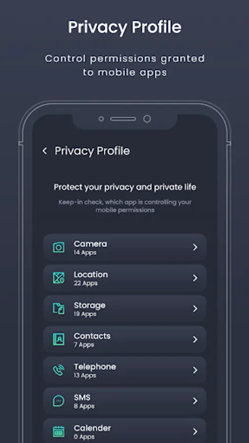 Review the personal data access provided to different Apps and safeguard your privacy. MProtectt helps to identify sensitive permission intensive App.