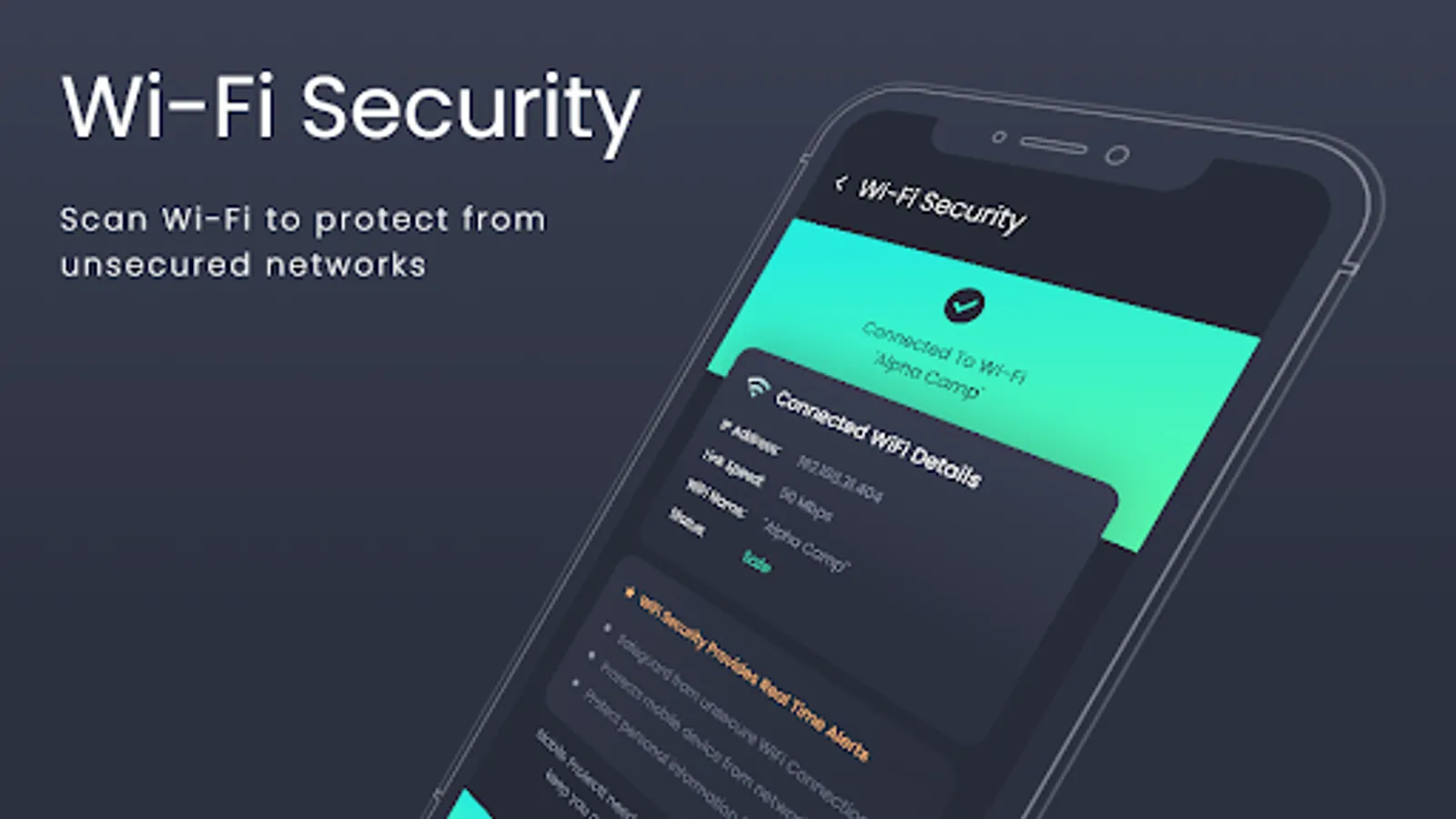 Scan your Wi-Fi on the go to keep you protected from unsafe Wi-Fi and data thefts. MProtectt provides continuous protection through real-time status of the connected Wi-Fi.