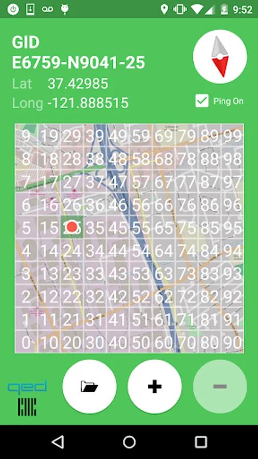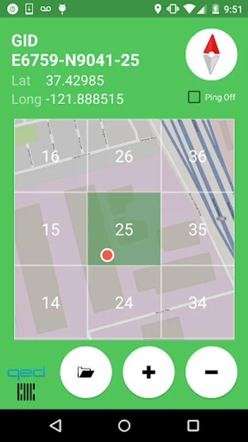 The Grid Locator identifies where you currently are in the Lambert Azimuthal Equal Area (LAEA) coordinate system, and makes a sound whenever crossing the boundary from one grid to another. It also provides a compass that points north if your phone has a geomagnetic sensor.