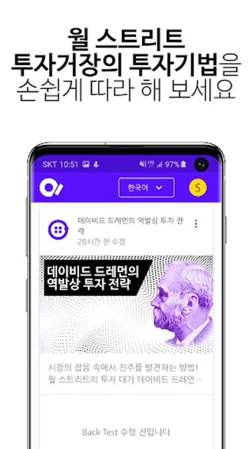 이제 손안에서 언제 어디서나, 당신의 투자 전략을 테스트하고 발전시켜 보세요!
