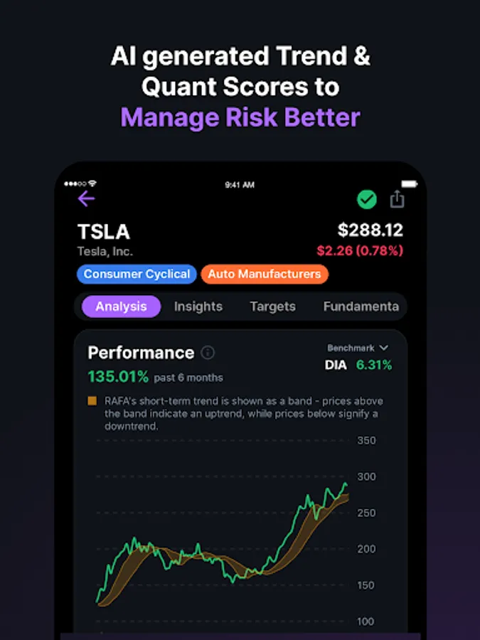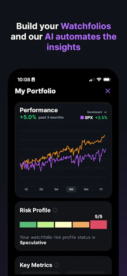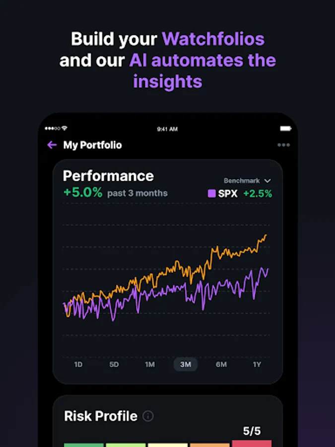 Watchfolio Insights: Group and track the performance of stocks before investing. RAFA's AI engine generates deep insights on all your watchfolios, helping you make informed investment decisions.