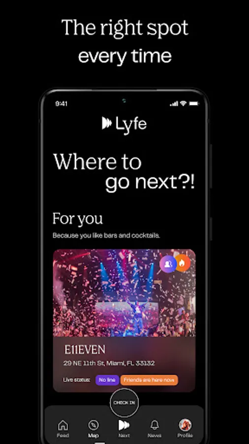 Based on your interests, the whereabouts of your closest friends and what’s hot in your area, Lyfe provides you with a personalized game plan for your day or night out. No more outdated info or unhelpful reviews. With Lyfe, people help each other find the next place to go by live voting and sharing, while keeping their friends in the loop on their plans.
