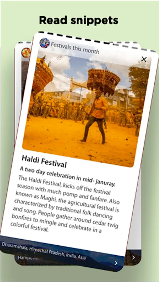 Snippets of local guides for food, language, festivals, etc with all essential info at your fingertips for all eateries and stays.