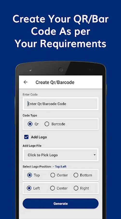 With QR & Barcode Scanner You can also create your own Customized QR / Barcode. To add Plus Point to it this application provide you an option to place your logo inside QR code Isn't that amazing.