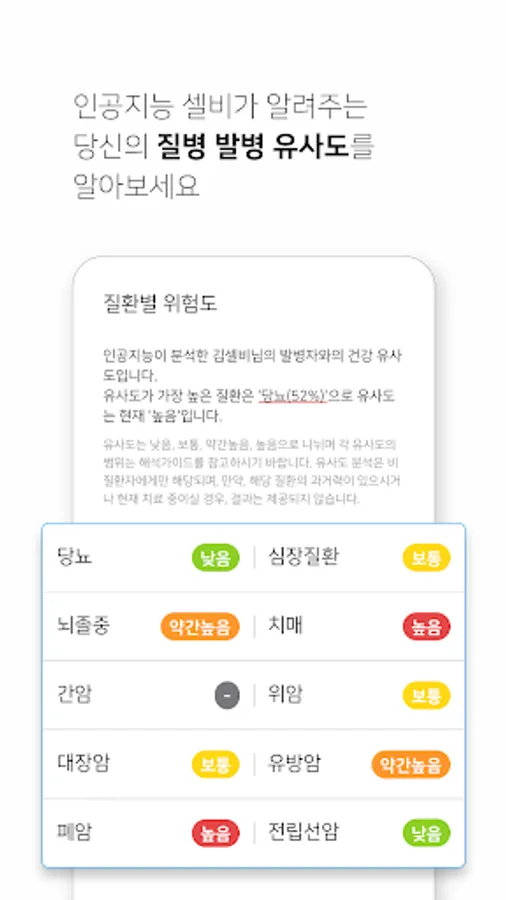 Selby Checkup is an AI-based health management solution developed through joint research with a large hospital in Korea based on its own Selvy Prediction platform.