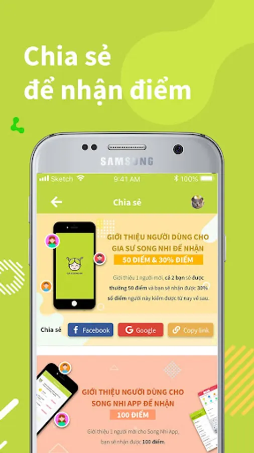 - The tutors can introduce the Song Nhi (https://www.songnhi.ai) application to others and receive 100 bonus points immediately.