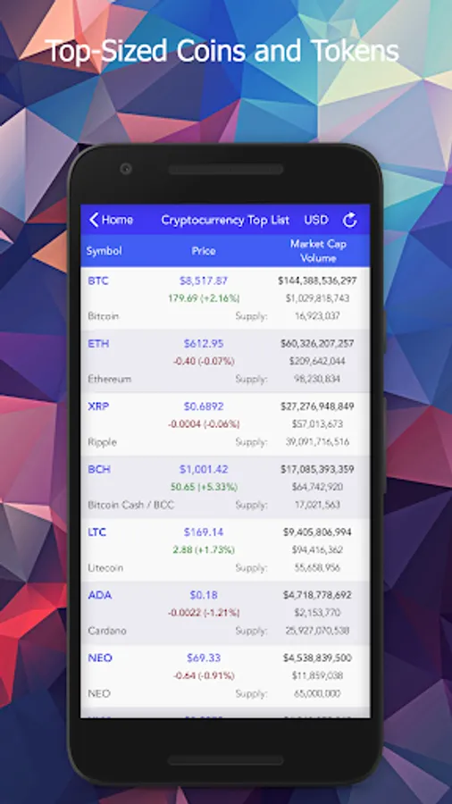 Crypto Top Charts is a must-have app for crypto investors. It supports nearly 2,000 crypto currencies/coins/tokens in real-time, with advanced charts and many powerful analyses.