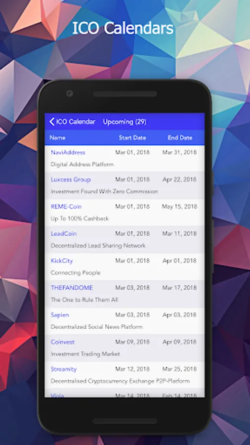 Check ICO Calendar and view rich information for various Initial Coin Offerings, e.g. the key figures, the team, the description, and so on.