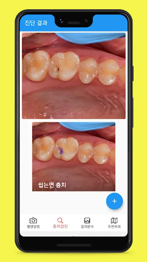 Artificial intelligence finds cavities in tooth photos and displays the location to notify you.