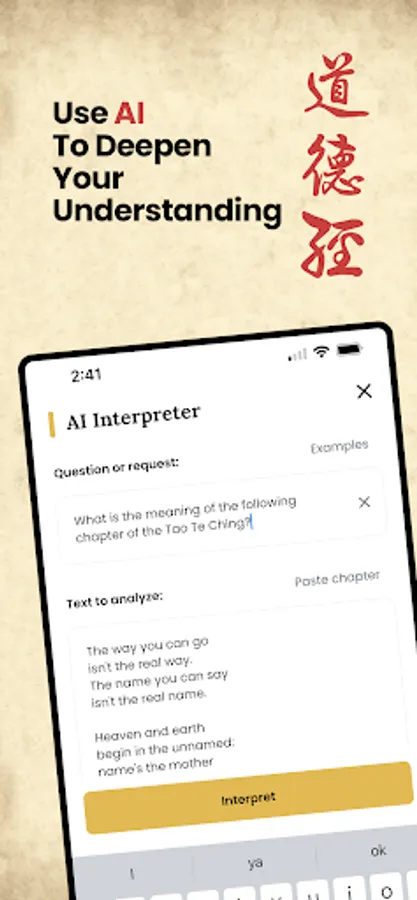 Overall, the AI interpreter is a powerful tool for anyone who is interested in the Tao Te Ching and wants to explore its meaning and significance in new and innovative ways. With this feature, you can unlock the true potential of the text and gain a deeper appreciation of its timeless wisdom.