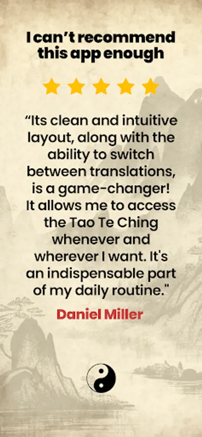 Whether you're a longtime practitioner of Taoist philosophy or simply looking to explore the ancient wisdom of the Tao Te Ching, this app has everything you need to bring the teachings of Lao Tzu into your daily life.