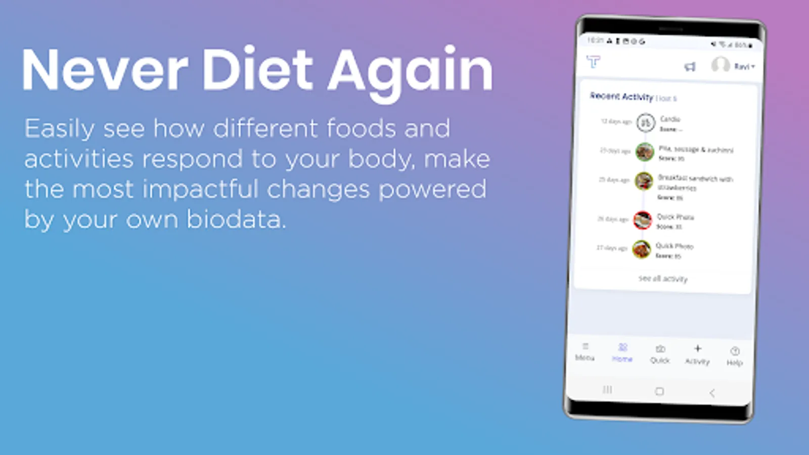 Theia Health allows existing users to easily input activities such as food, and see their own body's response. We connect with existing biosensors to provide objective data on impact of diet/lifestyle changes, enabling you to focus on things that work for your body like never before.
