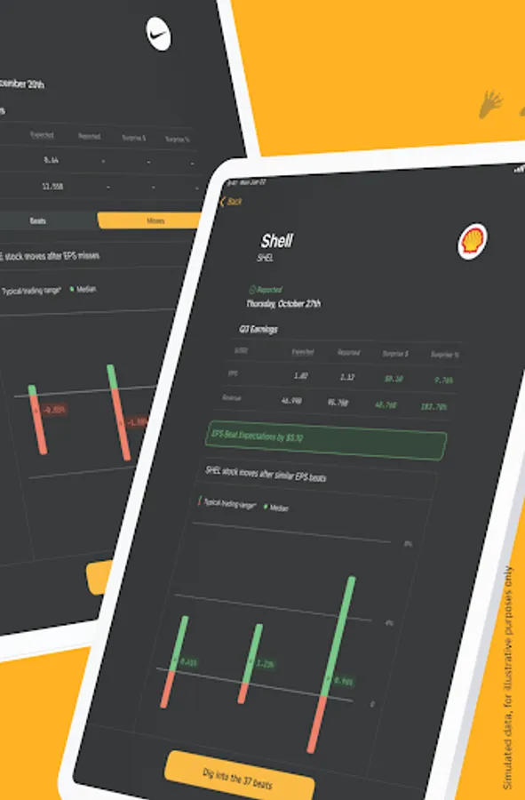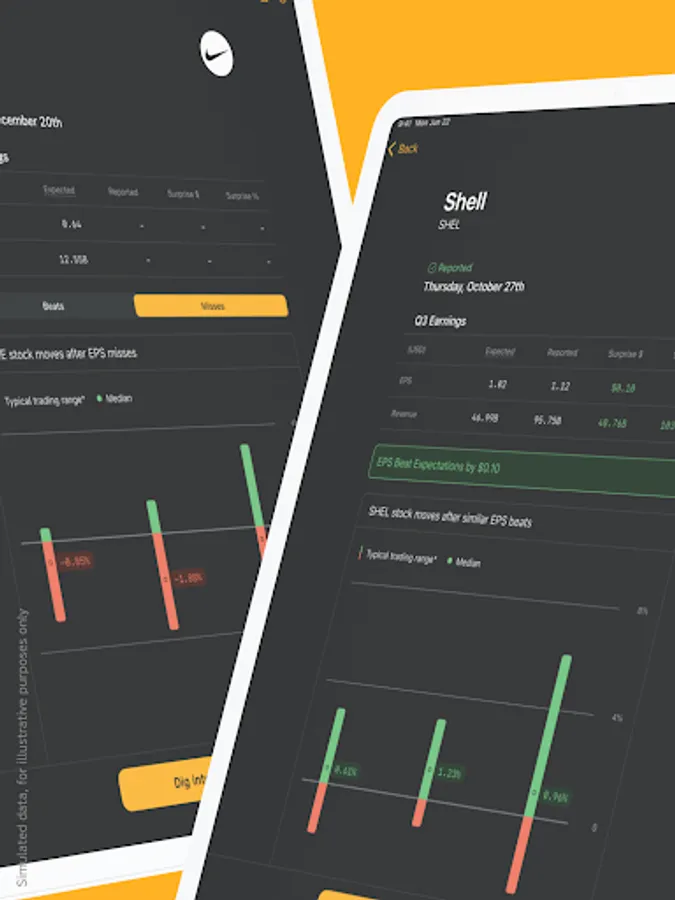 Discover recent and upcoming earnings release with WhatIF: Earnings app. Before earnings, find out where the stock could go depending on a beat, meet or miss. After earnings, find out where the stock could go after one week, two weeks or one month based on similar releases in the past.