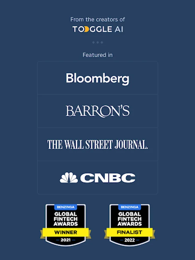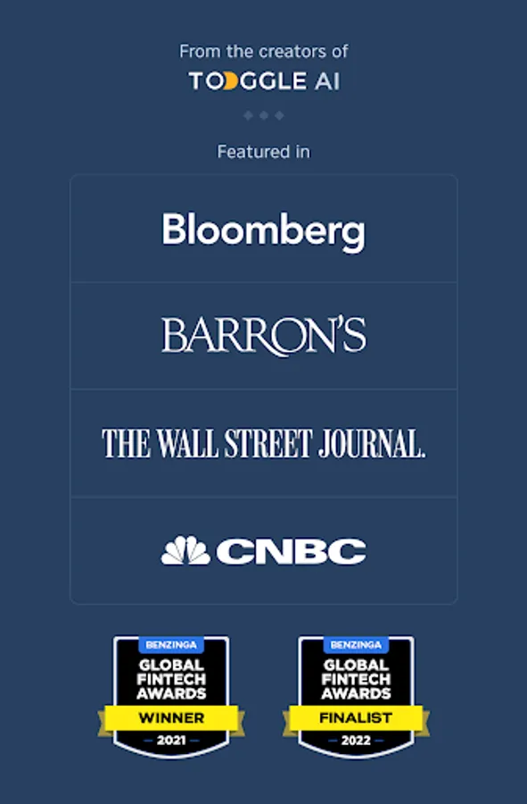 Created by the experts at TOGGLE AI, award-winning investing tool. As seen in CNBC, Bloomberg, the Wall Street Journal, Reuters, Fox Business, Business Insider, and more.