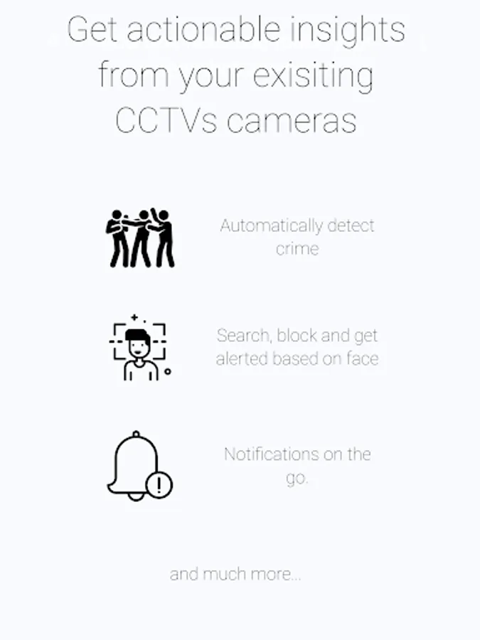 We provide actionable real-time actionable insights from CCTV feeds, without deploying a large workforce and heavy initial investment, for monitoring and reporting. We are replacing human effort required in surveillance, by delivering answers to the 3 most important questions-
