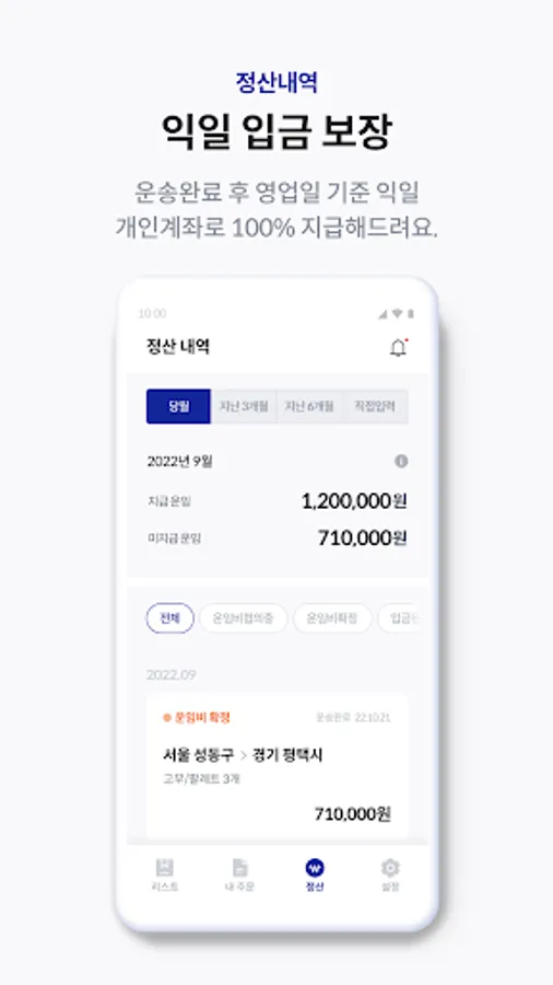 You can easily check the payment status of orders that have been transported and the monthly freight charge amount for settlement management.