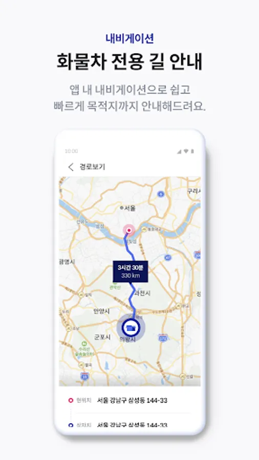 The in-app navigation guides you quickly to your destination on a route that suits your vehicle specifications.