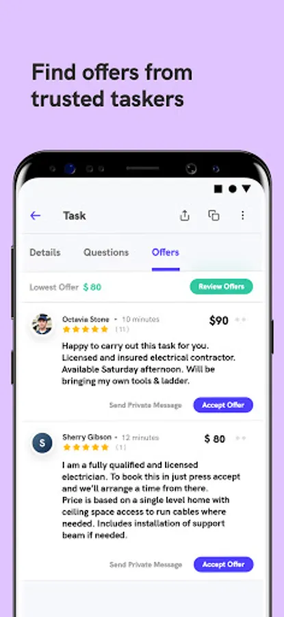 2. Experienced Taskers put offers on your task, and are allowed to ask questions for more details on the task