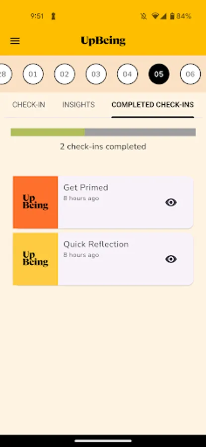 UpBeing automates how you measure, understand and improve your habits. It takes just a minute a day to feel better.