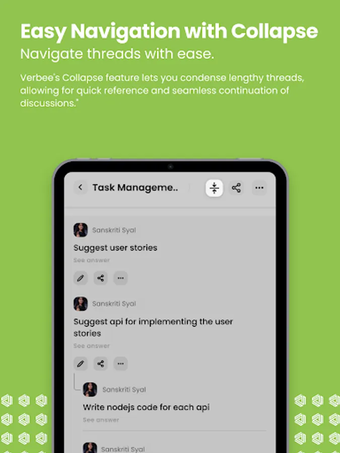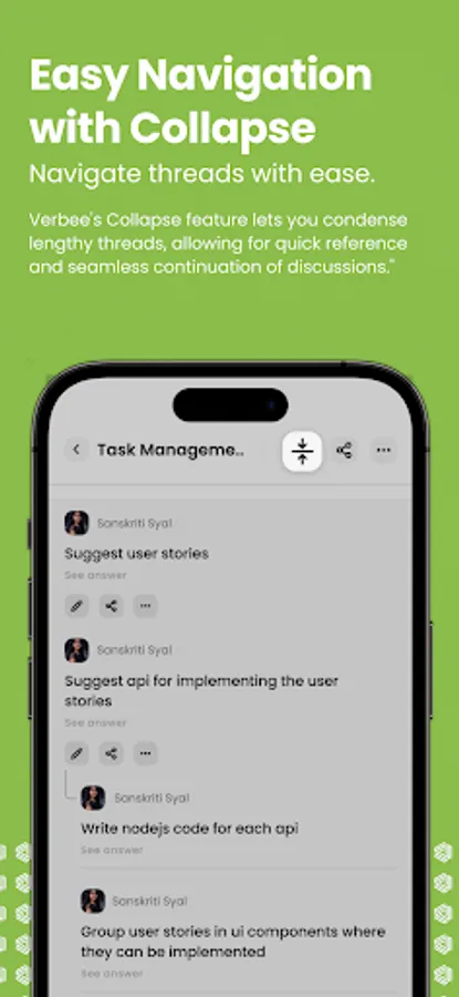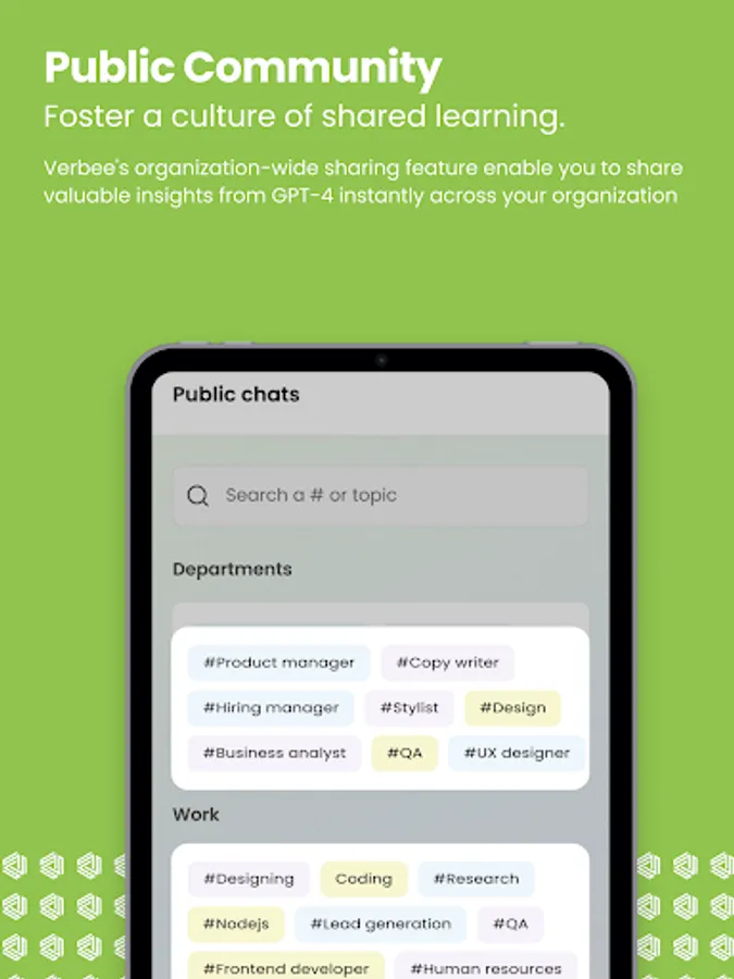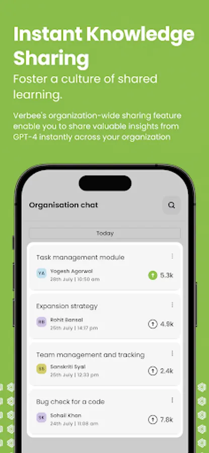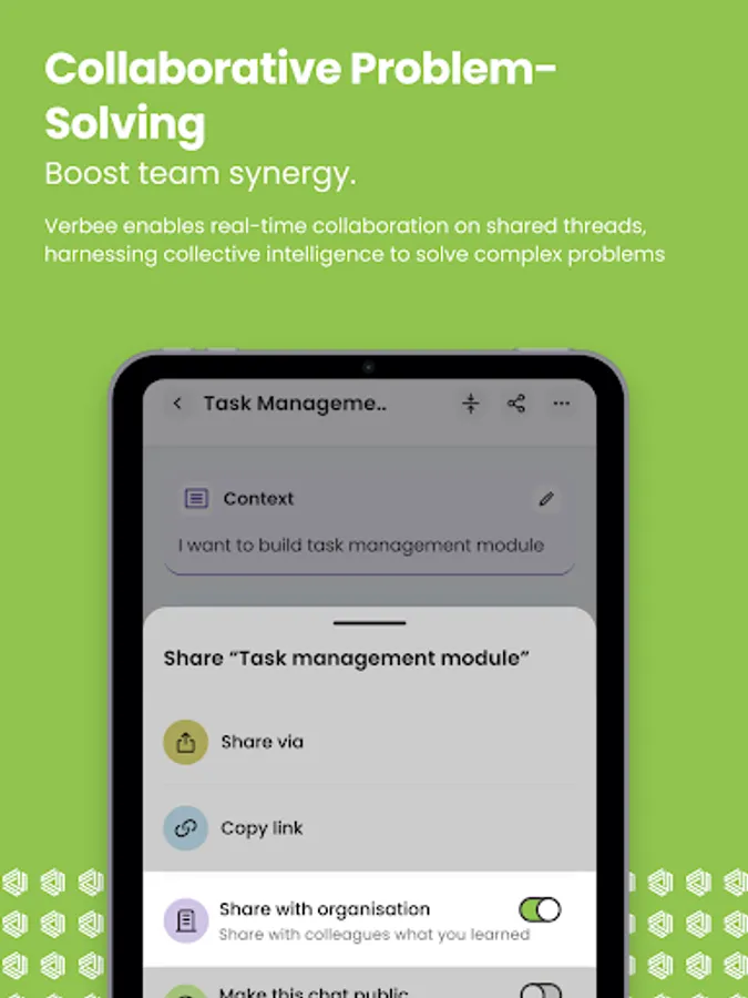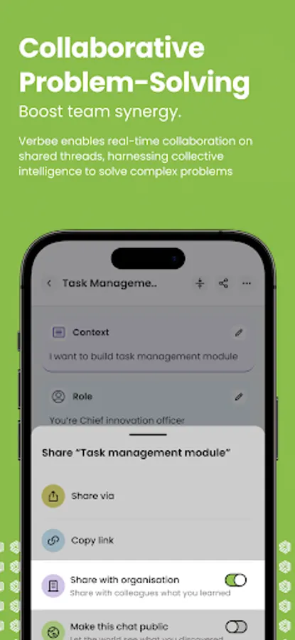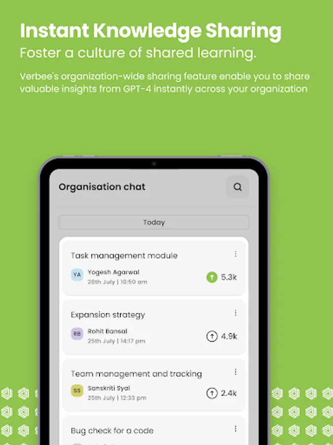 2. Enhanced Collaboration: Verbee promotes real-time chat sharing, organization-wide sharing, and collaboration, making learning more efficient and accessible for everyone. Collaborate with your peers and share valuable insights, ensuring that everyone stays on the same page.
