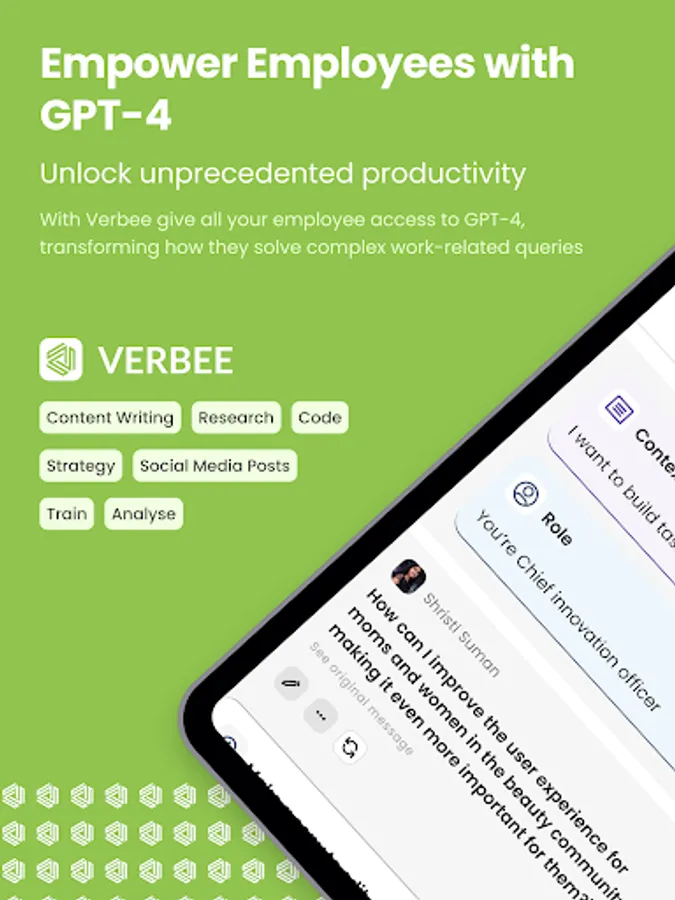 Download Verbee now and take the first step towards revolutionizing your organization with the power of GPT-4.