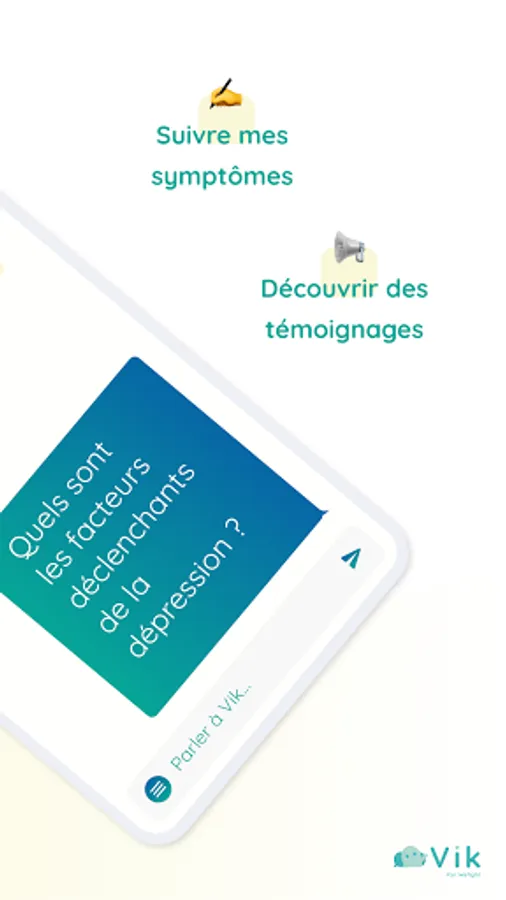 Vik Depression is a free app created by healthcare professionals in close collaboration with patients to help you better understand and cope with depression every day!
