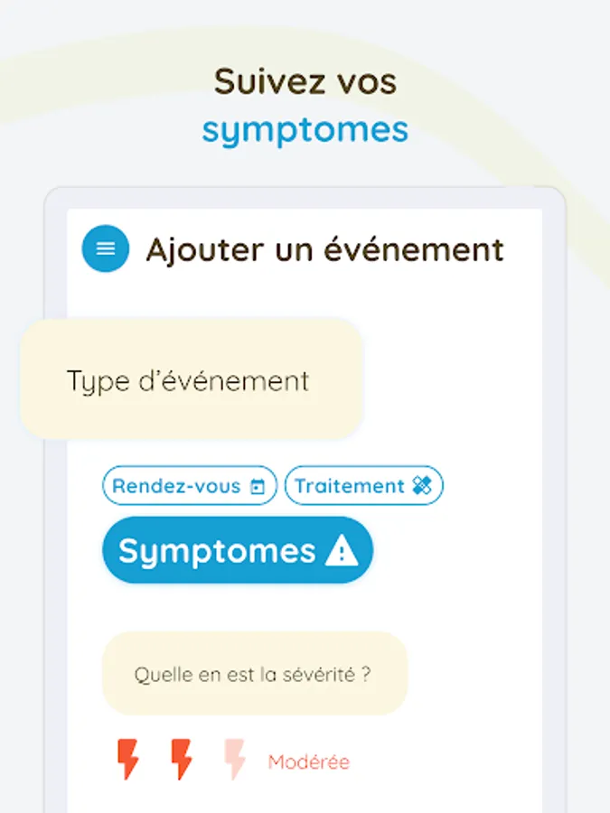 This section helps you to live better with the disease on a daily basis with the possibility of creating reminders to take your treatments and medical appointments. Our health monitoring diary helps you follow your symptoms in order to better manage the pathology.