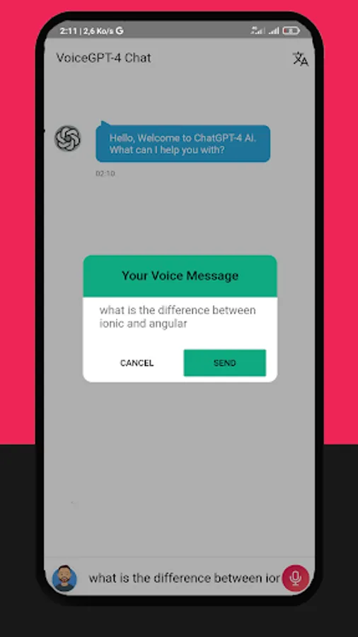 Discover the top-rated free AI chatbot app, VoiceGPT AI, powered by the powerful GPT technology, which serves as an assistant for ChatGPT 🏆. With text or voice input and written or spoken output, you can communicate with ChatGPT just like you would with a human, using only your voice. Try VoiceGPT AI for yourself and see how useful it can be! 🤖