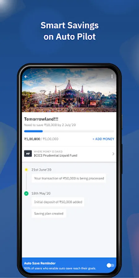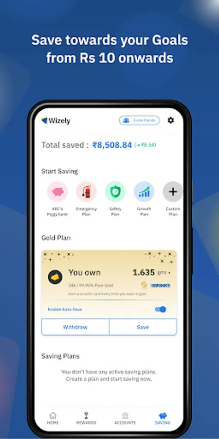 - Makes it easy to create saving plans and save any amount and any time for emergencies and other life goals. You can start saving with just Rs 10