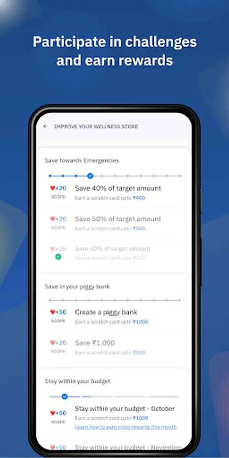 - Makes it fun and rewarding to participate in spending, saving and financial wellness challenges and improve Score