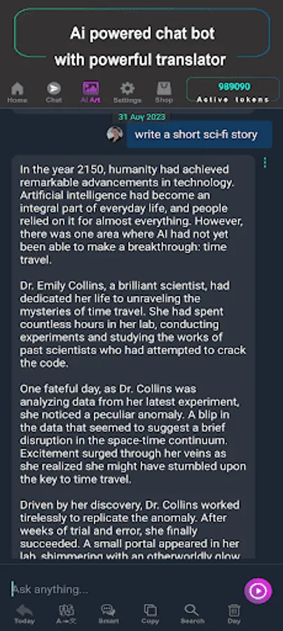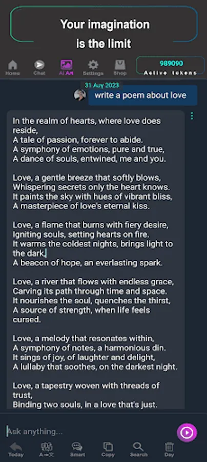 Ai and I uses NLP algorithms to analyze the user's input and generate appropriate responses. The AI system can understand the meaning and intent behind the user's words and provide tailored responses based on the context of the conversation. The application can also learn from previous conversations (Smart feature) and use that knowledge to improve its responses over time.