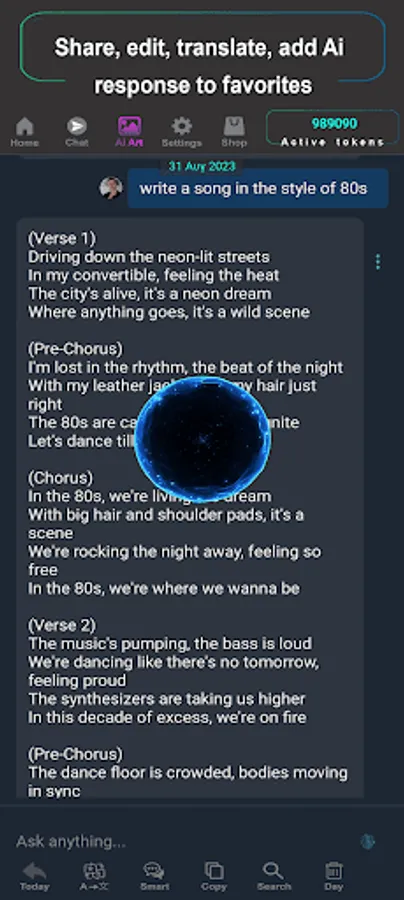 chat history, edit, delete, share replies, export replies to a .txt format, text to speech and much more. Also, Ai and I is multilingual.