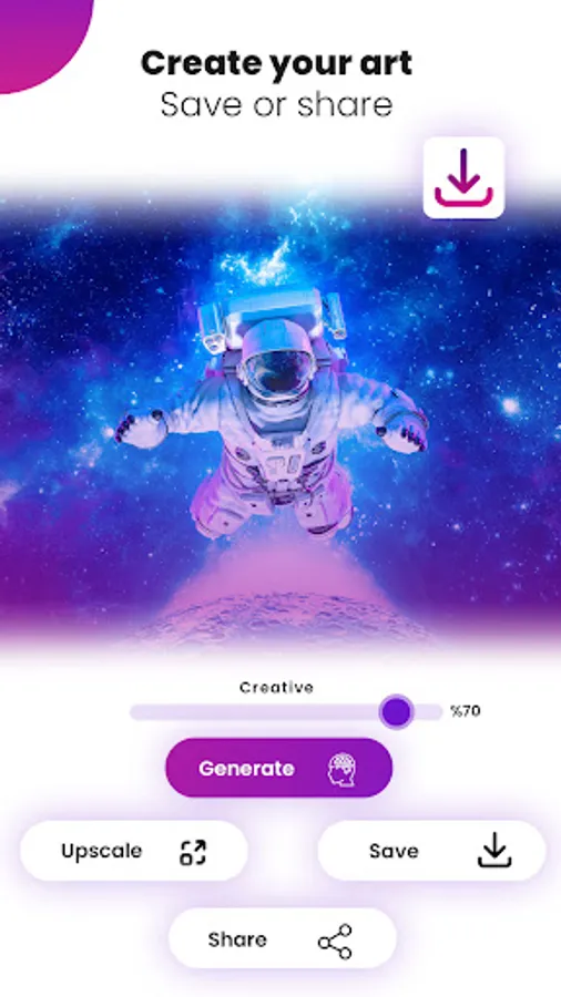 Use the AI art generator for amazing images like "Astronaut on Mars" or "Woman with rainbow hair". Turn your words into AI works of art now.